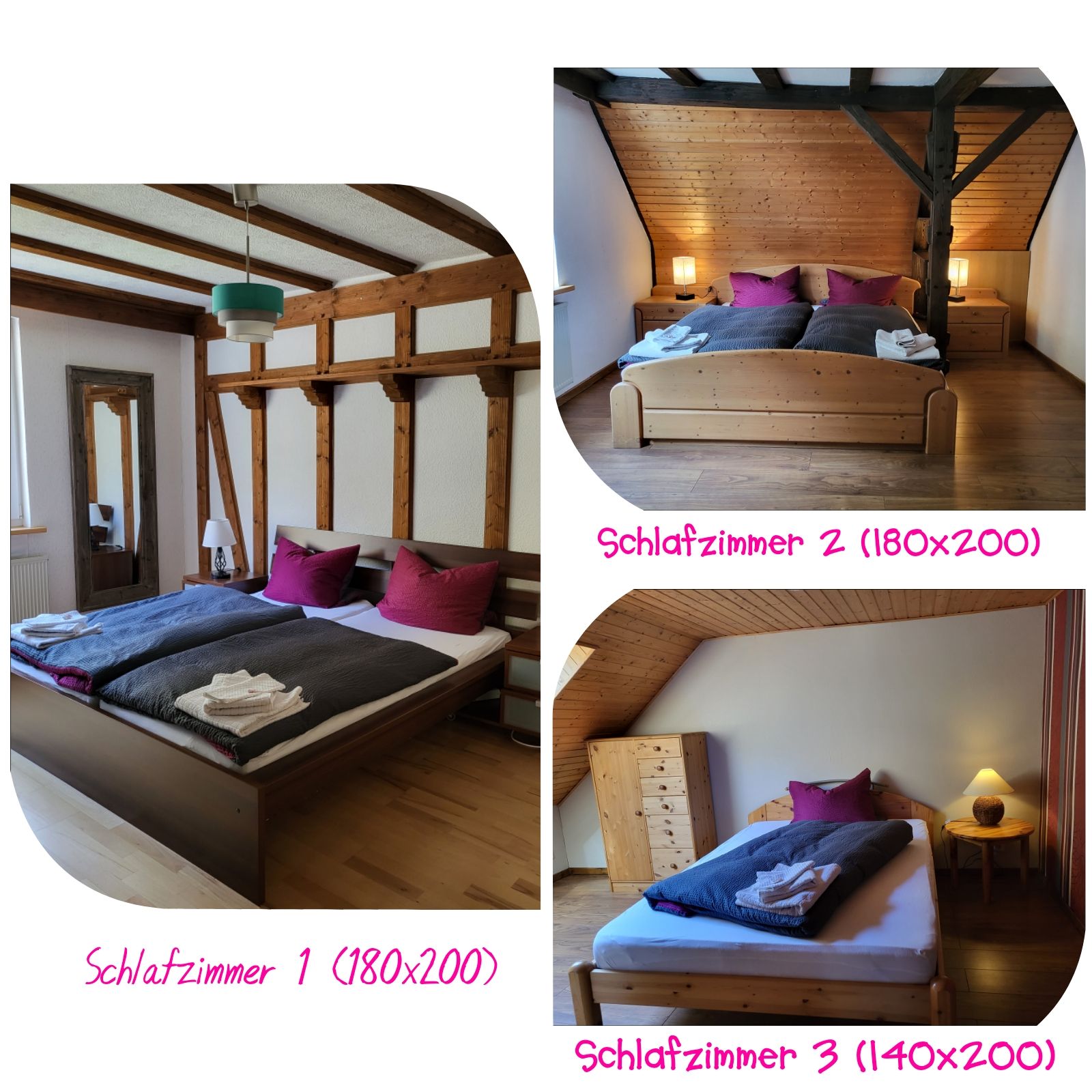 einem 180x200m Bett/Kommode und ein Zimmer mit einem 140x200 Bett und einer Kommode.